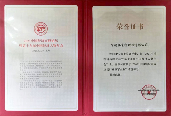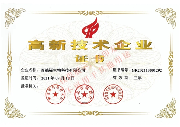 百德福公司荣获多项国家专利,是国家级高新技术企业,河北省专精特新企业,2021中国癌症营养康复行业领军企业等,获得了众多权威机构一致认可!