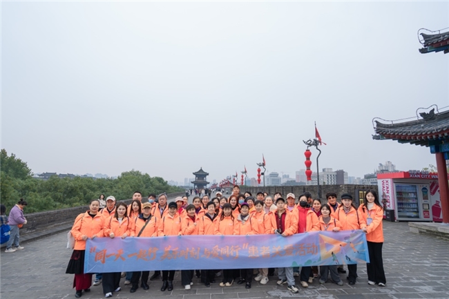 科普环节后,在场的医护人员、患者及家属一同登上西安城墙,在古朴庄重的氛围中开启了“同一天,一起行-美乐时刻,与爱同行”健步走环节。大家迈着轻快的步伐,在运动中交流抗癌心得,分享生活点滴,感受着集体的温暖和生命的力量。