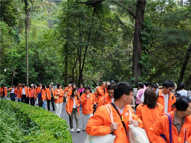 科普环节后,在场医护人员、患者及家属一同走入绿意盎然的越秀公园,开启了“同一天,一起行-美乐时刻,与爱同行”健步走环节。公园内绿植覆盖率极高,人工湖波光粼粼,恰逢周末集市,游人如织,热闹非凡。大家迈着轻快的步伐,在欣赏公园美景、感受城市活力的同时,交流抗癌心得,分享生活点滴,感受着集体的温暖和生命的力量。
